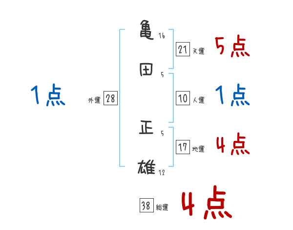 亀田正雄さんの画数の鑑定結果