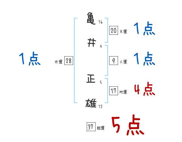 亀井正雄さんの画数の鑑定結果