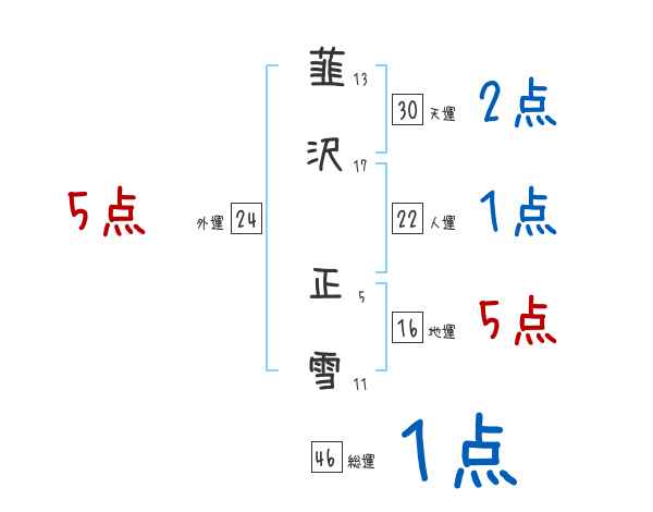 韮沢正雪さんの画数の鑑定結果
