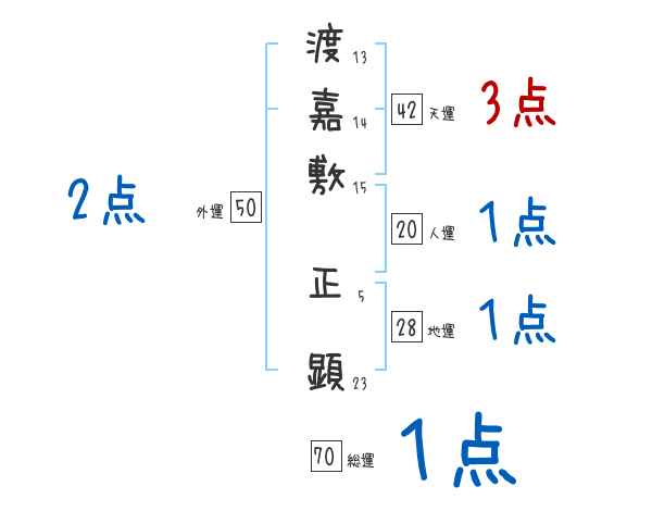 地運![]() | 渡嘉敷正顕さんの地運は28画の1つ星!家庭環境に注意。スポーツで活躍できる能力があるかも。 個性を表す基礎的な運勢です。性格形成や対人関係、行動力など家庭環境に影響されます。主に誕生してから20歳くらいまでの若年期の運勢を表します。 |