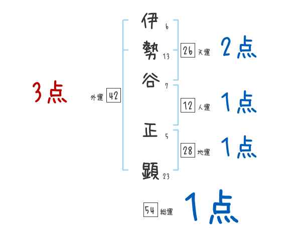 天運![]() | 伊勢谷正顕さんの天運は26画の2つ星!波瀾万丈かも。信頼できる人を大事にしましょう。 家系が持つ宿命的な運勢を表します。祖先から受け継いだ苗字ですので自分の力が及びません。家柄を象徴します。 |