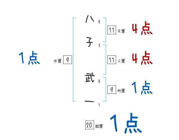 八子武一さんの画数の鑑定結果
