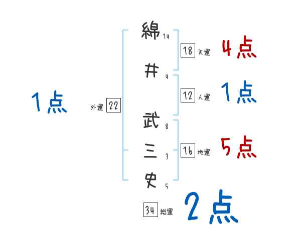 綿井武三史さんの画数の鑑定結果
