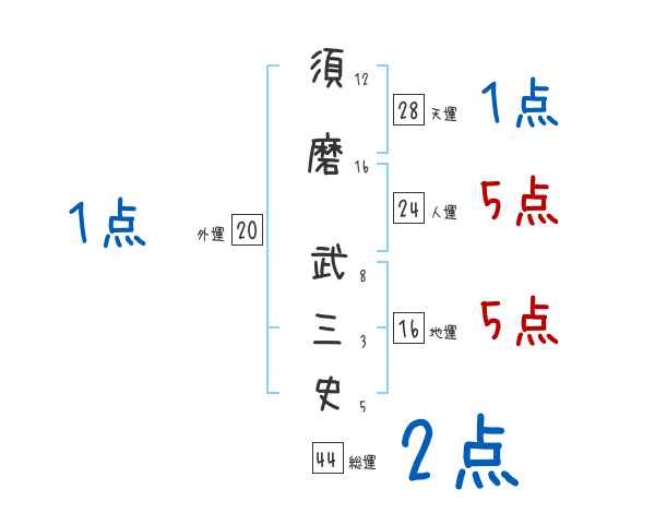 天運![]() | 須磨武三史さんの天運は28画の1つ星!家庭環境に注意。スポーツで活躍できる能力があるかも。 家系が持つ宿命的な運勢を表します。祖先から受け継いだ苗字ですので自分の力が及びません。家柄を象徴します。 |
