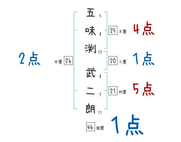 五味渕武二朗さんの画数の鑑定結果