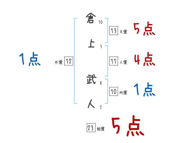 倉上武人さんの画数の鑑定結果