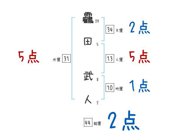 靏田武人さんの画数の鑑定結果