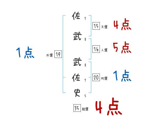 人運![]() | 佐武武佐史さんの人運は16画の5つ星!人望が厚く大きく発展する。逆転成功が見える。 性格や才能などを表す2番目に重要な運勢です。人間関係や協調性、社会的な成功に影響します。主に20歳から50歳ぐらいまでの中年期の運勢を表します。 |