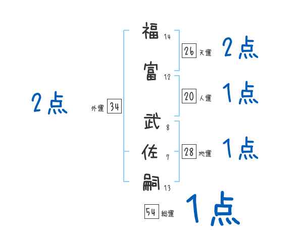 福富武佐嗣さんの画数の鑑定結果