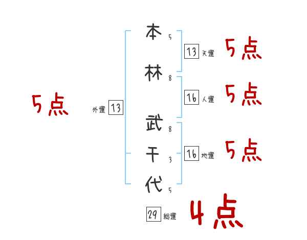 本林武千代さんの画数の鑑定結果