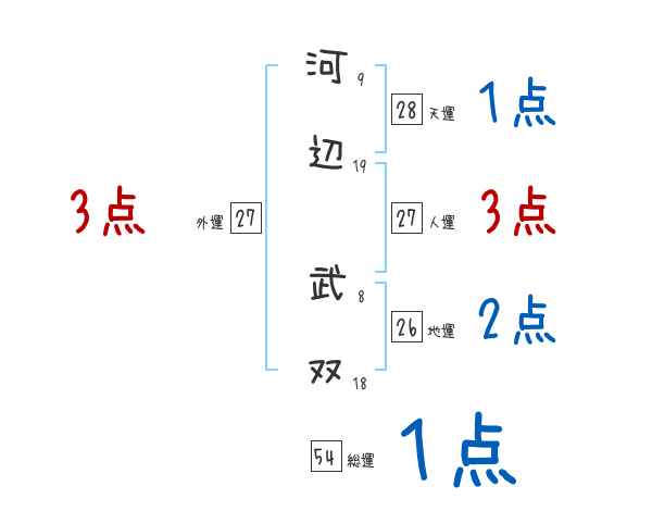 河辺武双さんの画数の鑑定結果