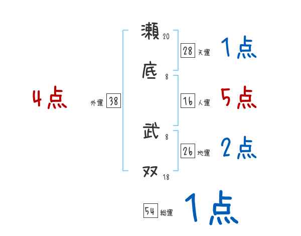 瀬底武双さんの画数の鑑定結果