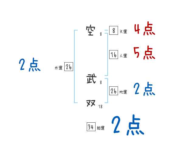 家系が持つ宿命的な運勢を表します。祖先から受け継いだ苗字ですので自分の力が及びません。家柄を象徴します。