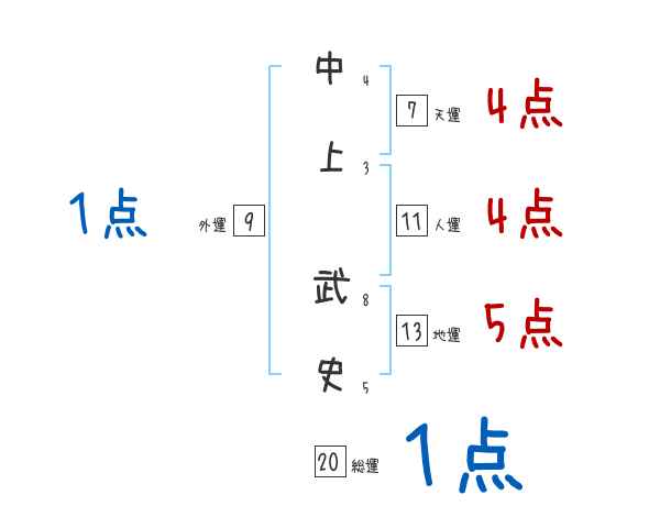 外運![]() | 中上武史さんの外運は9画の1つ星!消極的で才能を発揮することが苦手なことも。周りの意見に耳を傾けましょう。 生活面を象徴する運勢です。外部から受ける影響力を表し、結婚運、家庭運や職場、環境への順応性を表します。 |