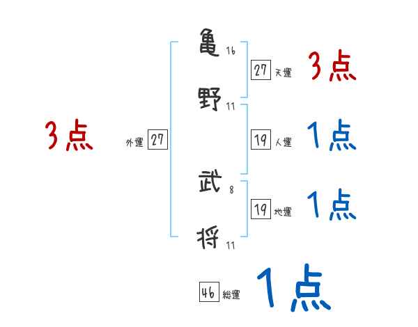 亀野武将さんの画数の鑑定結果