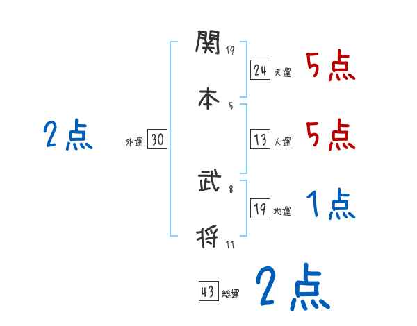 関本武将さんの画数の鑑定結果