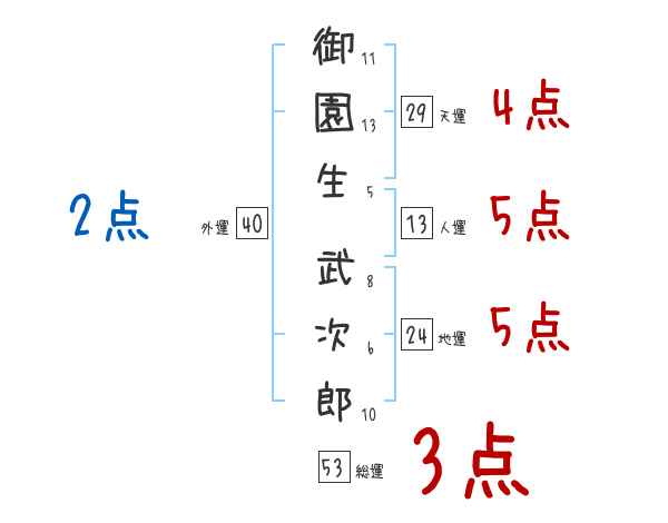 御園生武次郎さんの画数の鑑定結果