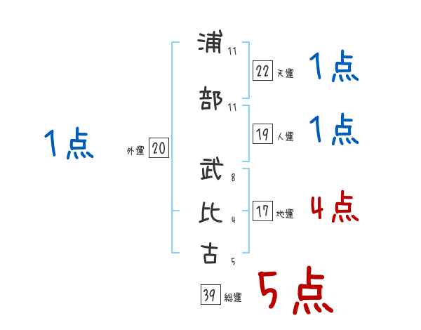 総運![]() | 浦部武比古さんの総運は39画の5つ星!社交性に優れ人望が厚い。人の上に立ち成功する。 あなたの人生を表す1番重要な運勢です。生涯を通じて影響する総合運となり、主に50歳以降の晩年期に影響を及ぼします。 |