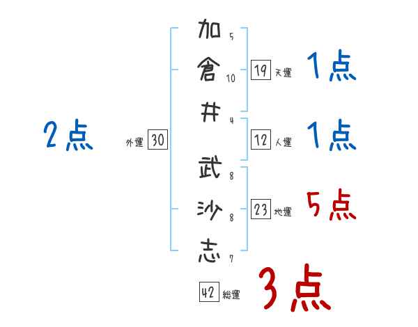 外運![]() | 加倉井武沙志さんの外運は30画の2つ星!浮き沈みの激しさに注意しましょう。 生活面を象徴する運勢です。外部から受ける影響力を表し、結婚運、家庭運や職場、環境への順応性を表します。 |