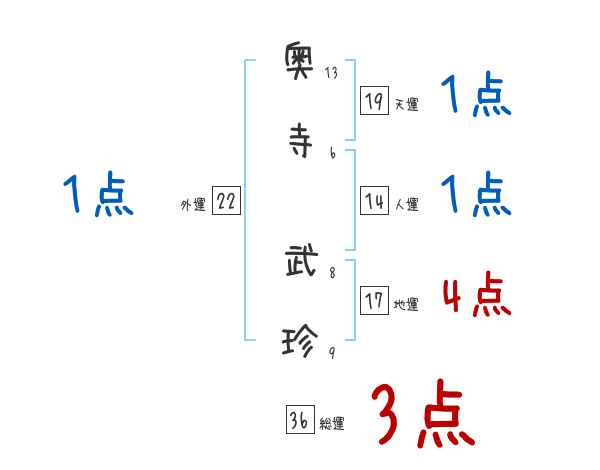 奥寺武珍さんの画数の鑑定結果