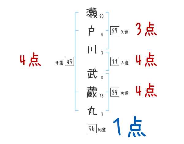 瀬戸川武蔵丸さんの画数の鑑定結果