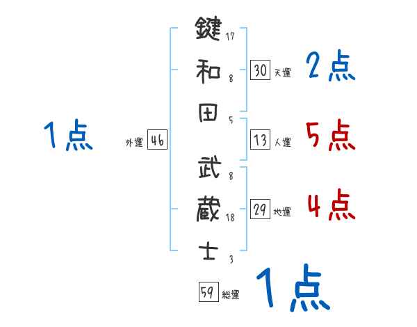 鍵和田武蔵士さんの画数の鑑定結果