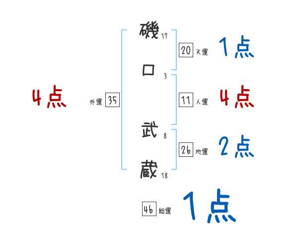 磯口武蔵さんの画数の鑑定結果