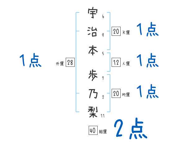 天運![]() | 宇治本歩乃梨さんの天運は20画の1つ星!社交が苦手。人とは違った才能があり波乱万丈な人生かも。 家系が持つ宿命的な運勢を表します。祖先から受け継いだ苗字ですので自分の力が及びません。家柄を象徴します。 |