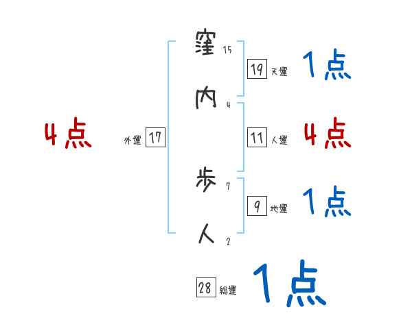 窪内歩人さんの画数の鑑定結果