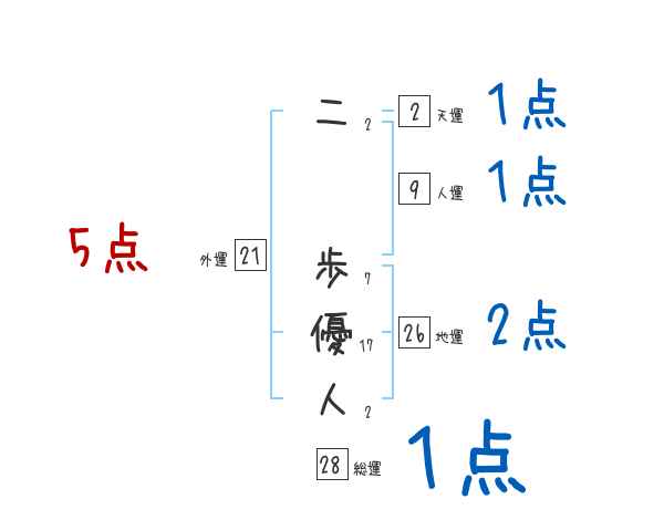 二歩優人さんの画数の鑑定結果