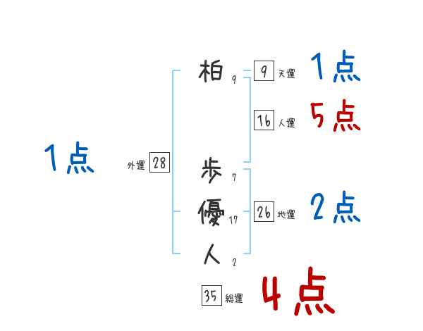 柏歩優人さんの画数の鑑定結果