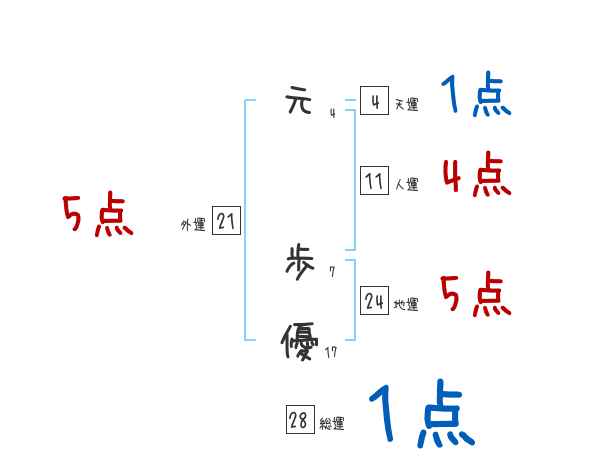元歩優さんの画数の鑑定結果