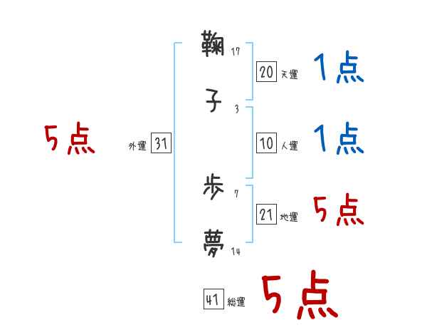 鞠子歩夢さんの画数の鑑定結果
