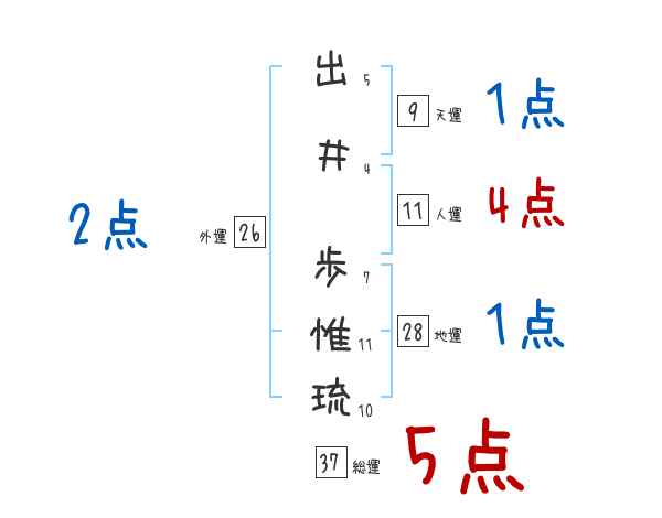 出井歩惟琉さんの画数の鑑定結果