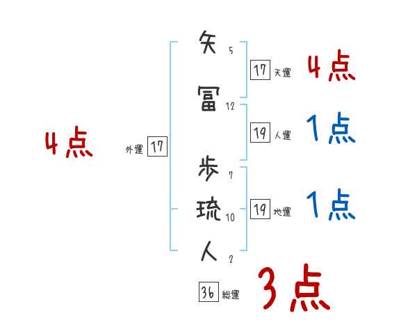 矢冨歩琉人さんの画数の鑑定結果