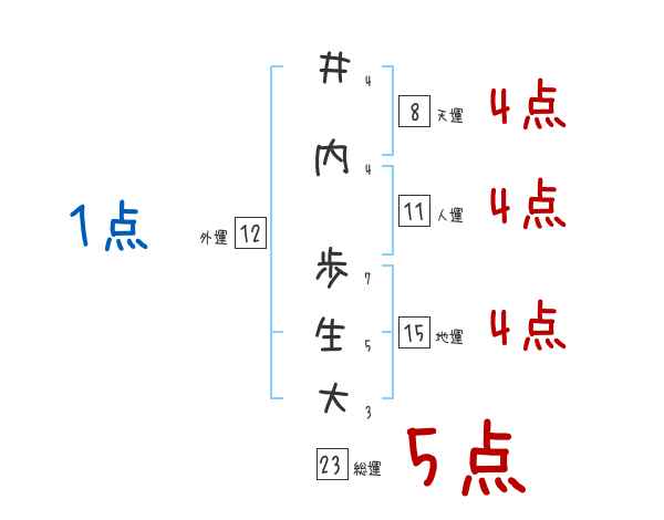 井内歩生大さんの画数の鑑定結果
