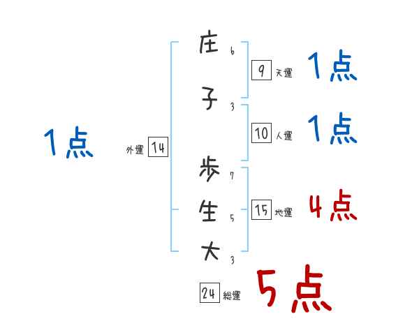 庄子歩生大さんの画数の鑑定結果