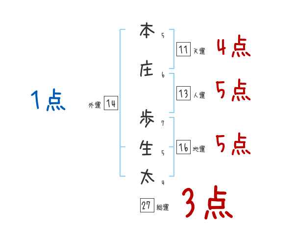 本庄歩生太さんの画数の鑑定結果