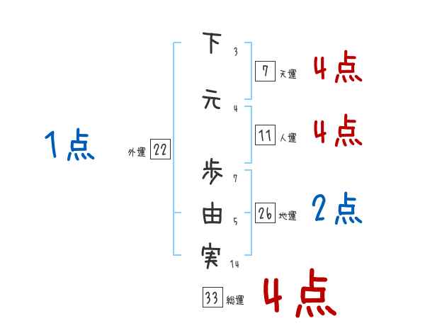天運![]() | 下元歩由実さんの天運は7画の4つ星!強い意志や信念を持ち独立心が強い。自立する。 家系が持つ宿命的な運勢を表します。祖先から受け継いだ苗字ですので自分の力が及びません。家柄を象徴します。 |