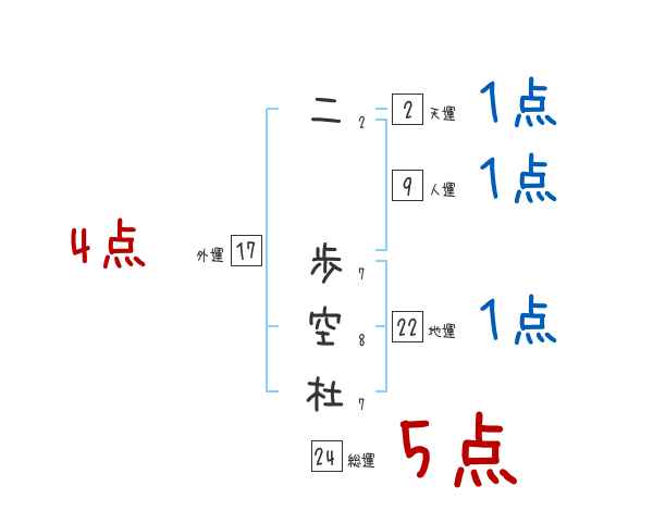 二歩空杜さんの画数の鑑定結果