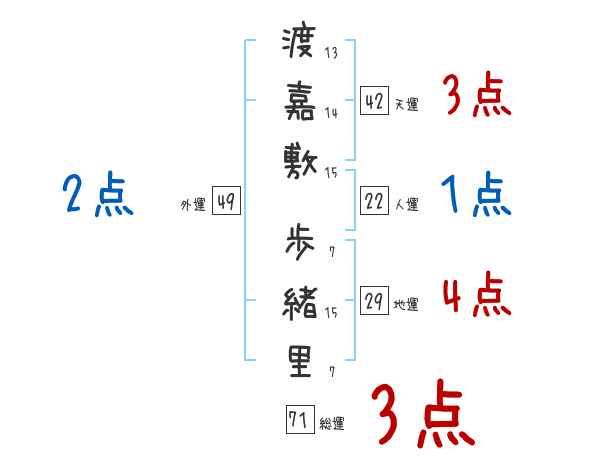 渡嘉敷歩緒里さんの画数の鑑定結果
