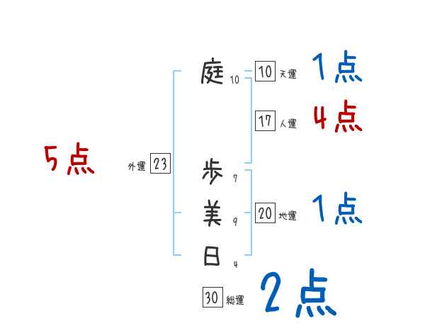 庭歩美日さんの画数の鑑定結果