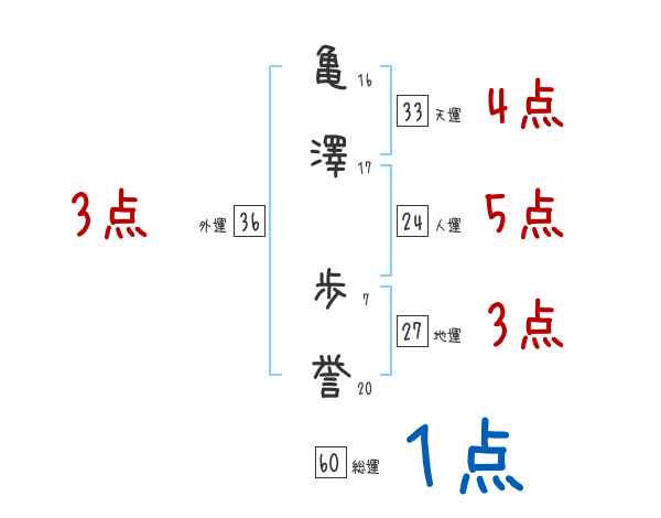 亀澤歩誉さんの画数の鑑定結果