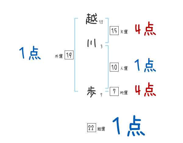 越川歩さんの画数の鑑定結果