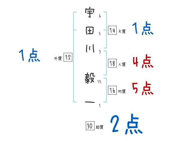 宇田川毅一さんの画数の鑑定結果