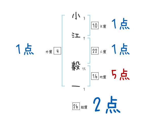 小江毅一さんの画数の鑑定結果