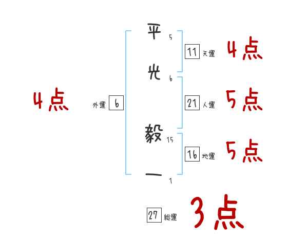 平光毅一さんの画数の鑑定結果