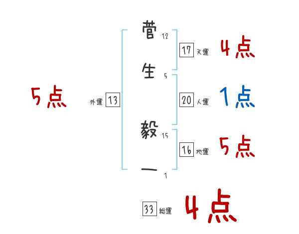 菅生毅一さんの画数の鑑定結果