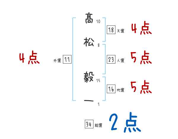 髙松毅一さんの画数の鑑定結果