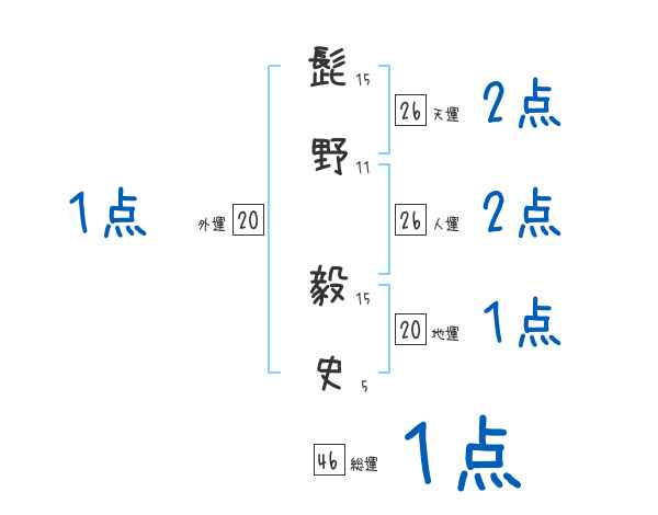 天運![]() | 髭野毅史さんの天運は26画の2つ星!波瀾万丈かも。信頼できる人を大事にしましょう。 家系が持つ宿命的な運勢を表します。祖先から受け継いだ苗字ですので自分の力が及びません。家柄を象徴します。 |